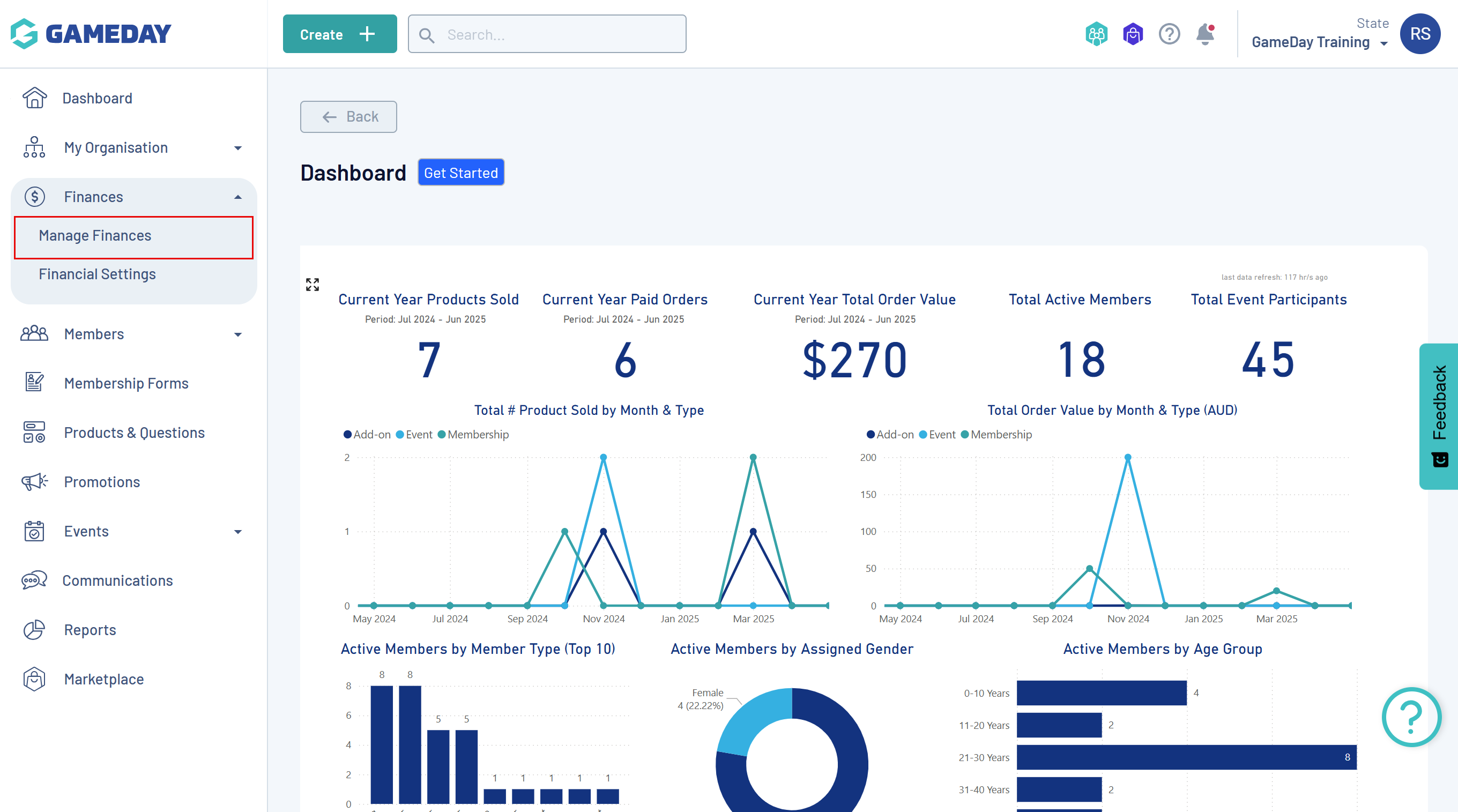 In the left-hand menu, click Finances > MANAGE FINANCES