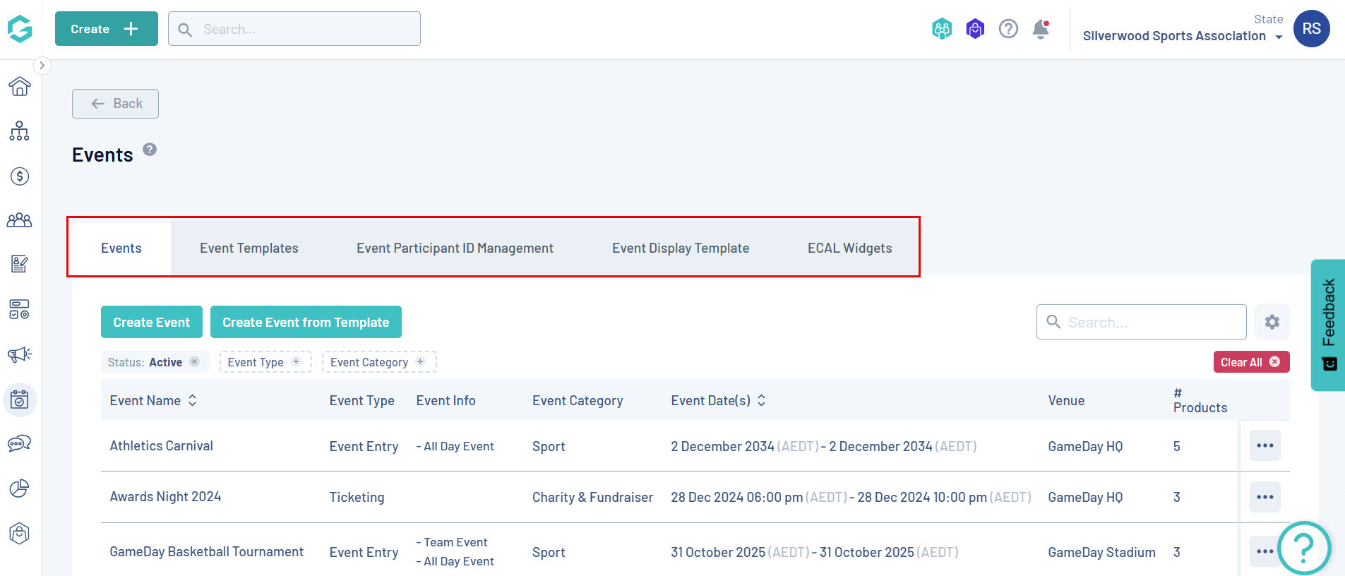 - Event Type: Denotes whether the event is a Ticketed, Event Entry or Team Event