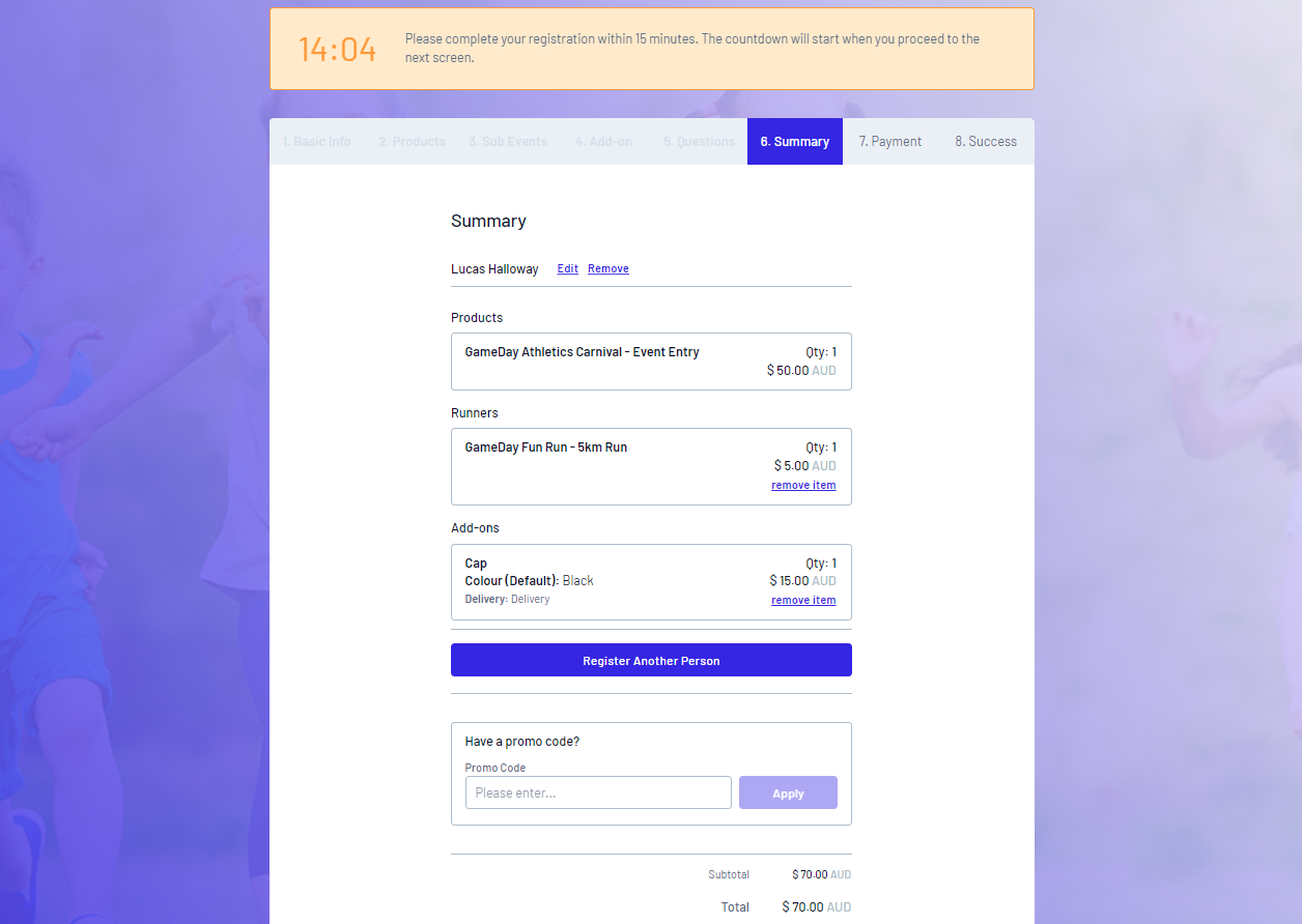 Event Registration Forms - like Landing Pages - are generated for every event you create through GameDay, and allow you to collect registrations and payments for any entrants registering for your event - Learn More