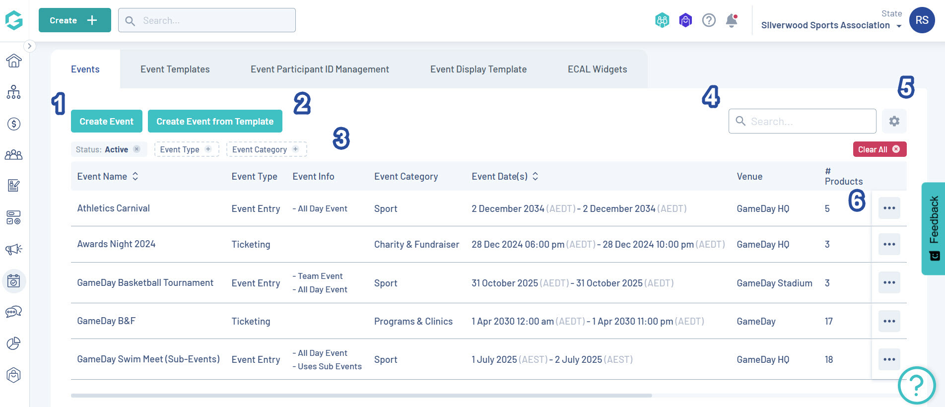 GameDay's Events module provides an end-to-end event management solution which integrates with various other elements of your GameDay database, such as memberships, products, reports, promotions and finances.