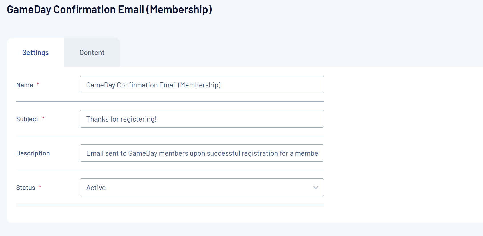 - Description: An internal description to let other GameDay administrators know what the Email Template should be used for