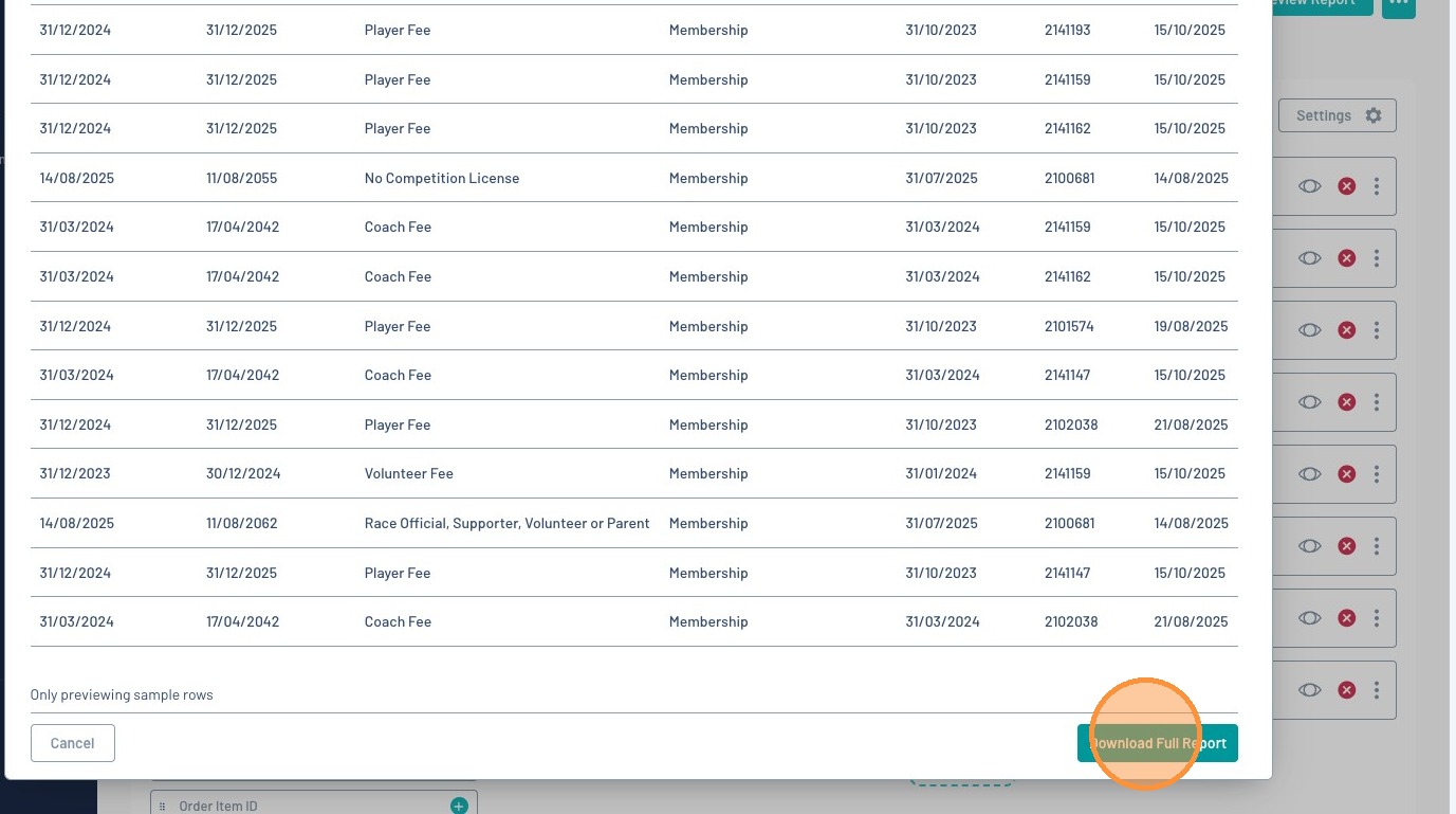 If you are happy with the report format, click the "Download Full Report" button tto generate an export of the full data set