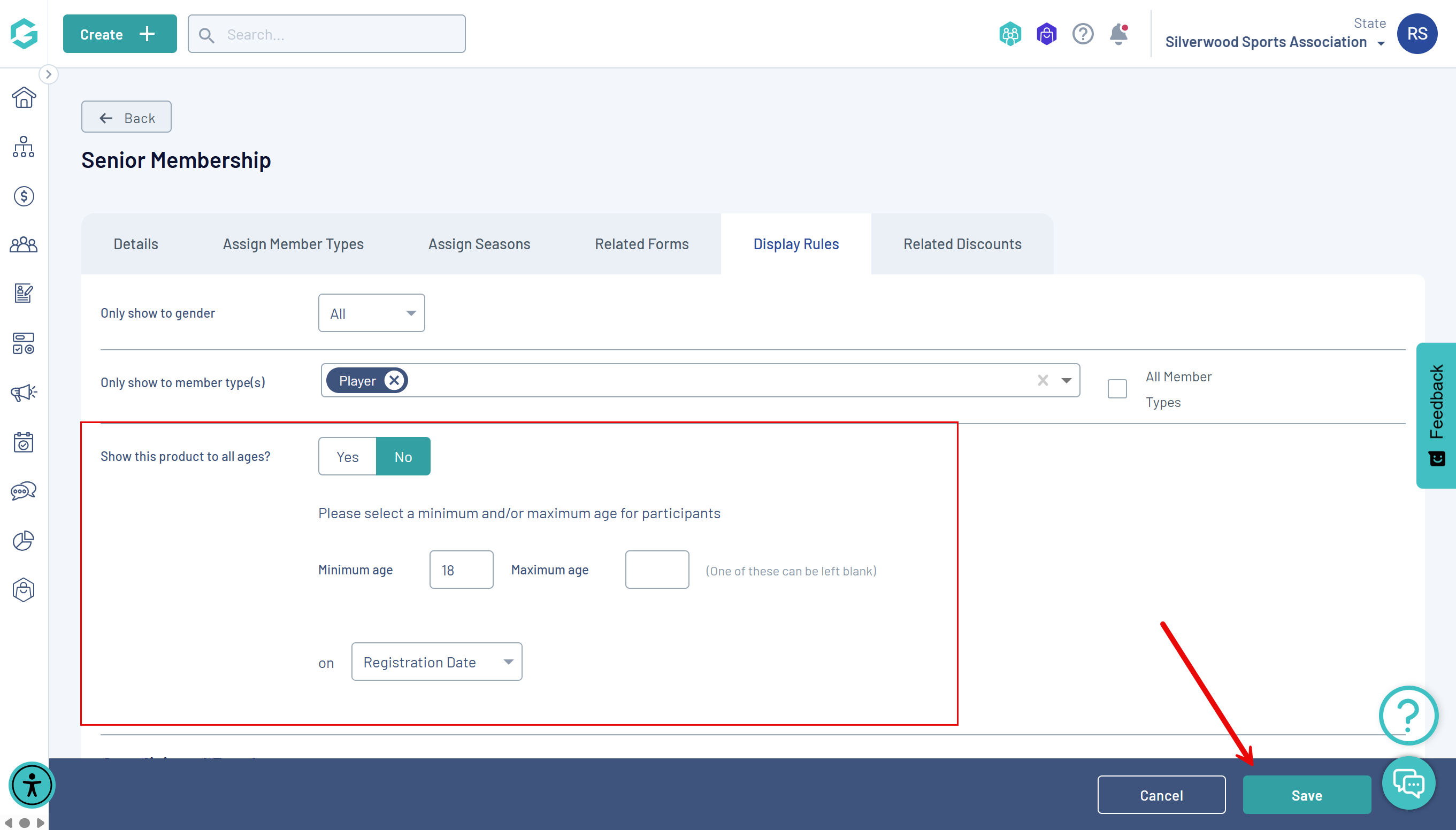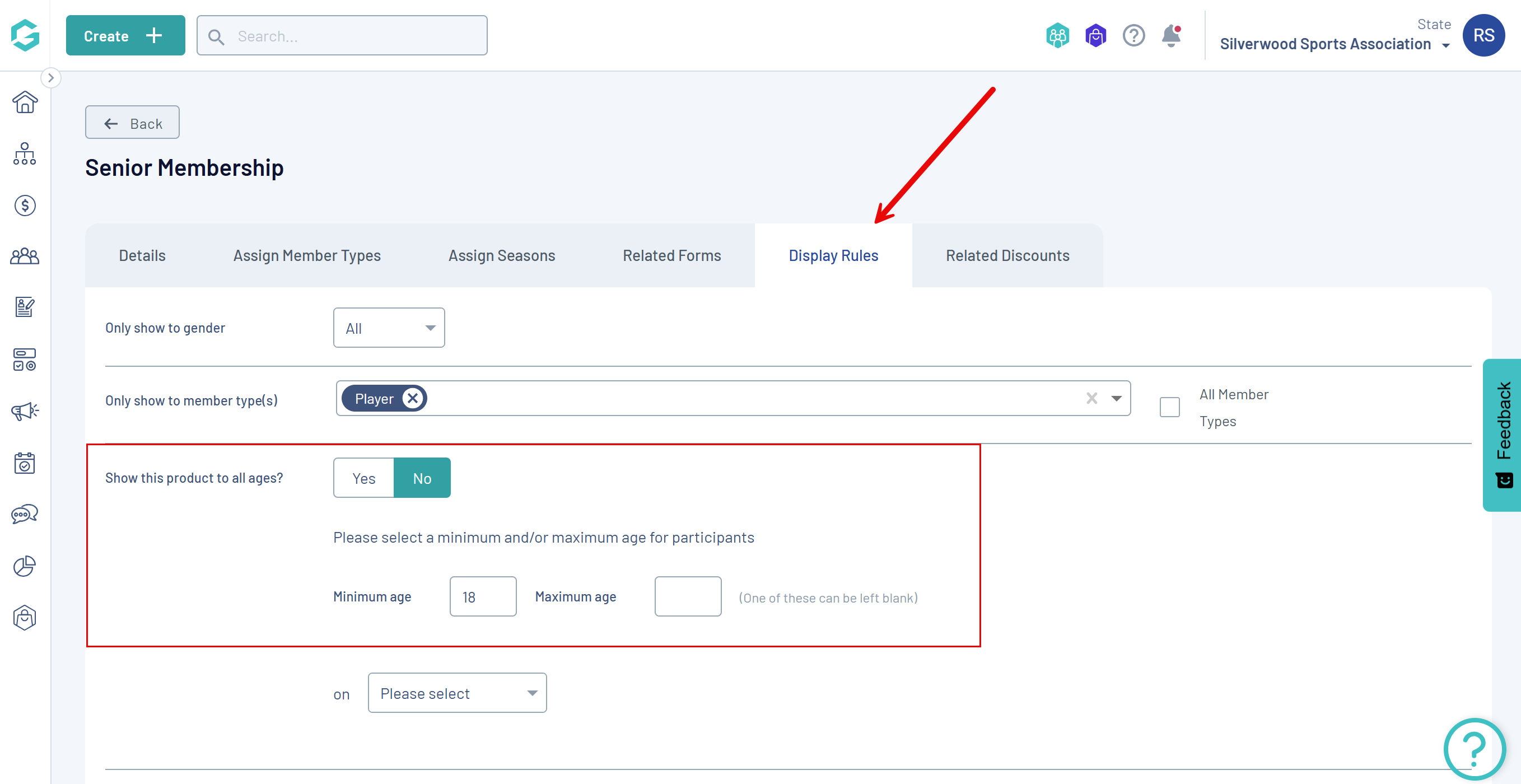 Now, we need to configure our display rules so that the Senior Membership only shows to members over 18, and the Junior Membership only shows to members under 18.
