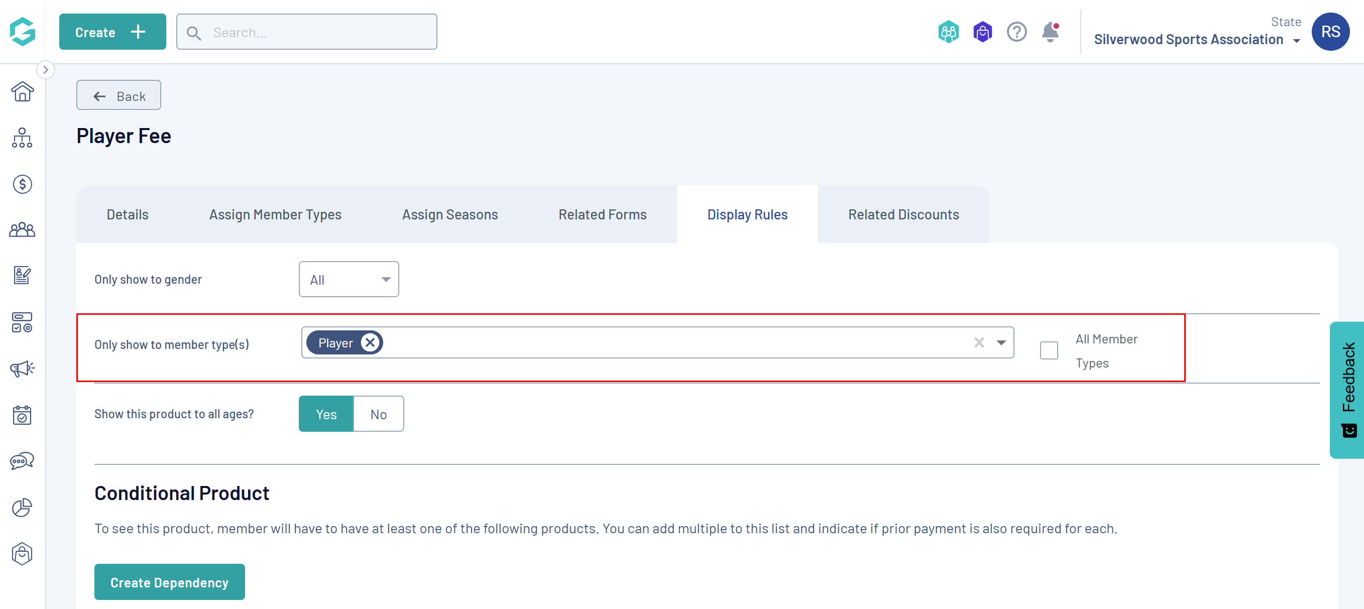 Finally, we want to make sure that the products are only displayed to members if they select the corresponding Member Type.